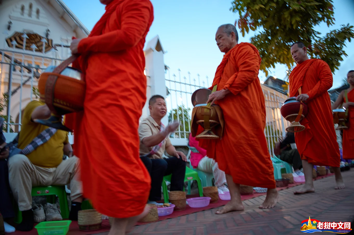 琅勃拉邦的清晨,人们赤脚踩在石头上发出轻柔的声音,这是“布施”(tak bat)仪式的一部分,也是当地生活的核心。