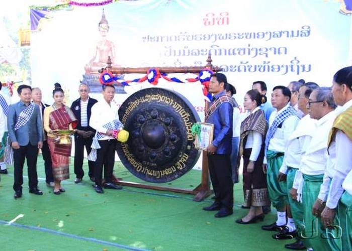 近日,万象省图拉空县班林山寺举行专项仪式,正式将三色佛认定为颂巴特敏芒族国家级文物。万象省行政委员会副主席颂松·苏翁坎占,省、县相关部门官员,僧尼代表,村委会成员及当地家长、学生等共同出席仪式。